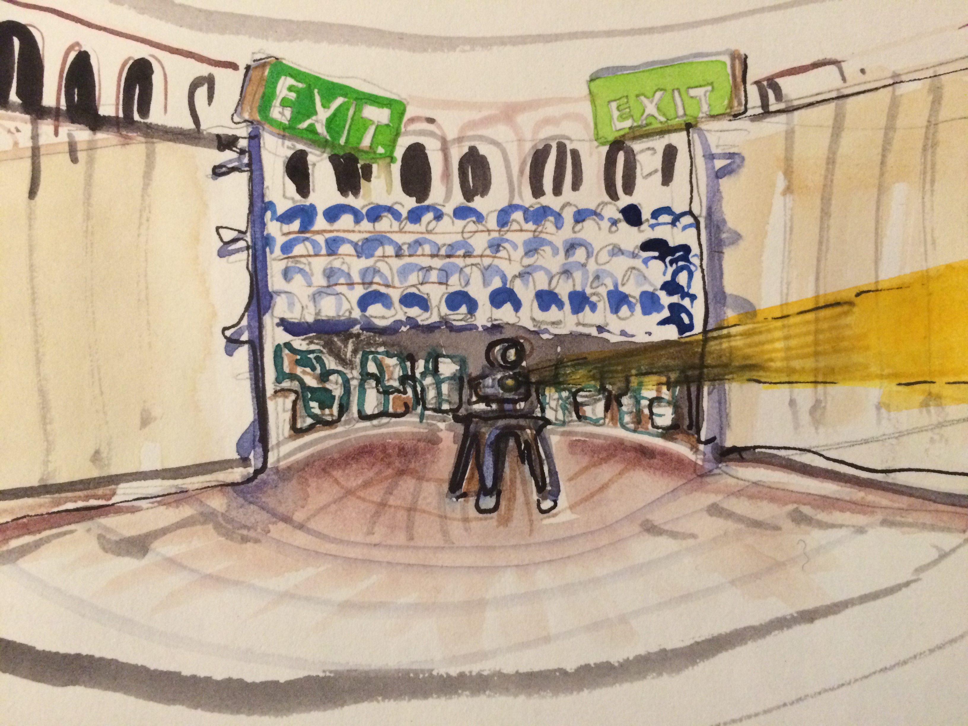 I visited the main lecture theatre in the heart of St. Angela’s campus.  Peeking through the heavy double doors, I could see the rows of racked seats that focus the gaze into the pit of the theatre.  It is quite Roman, quite gladiatorial, quite intense.