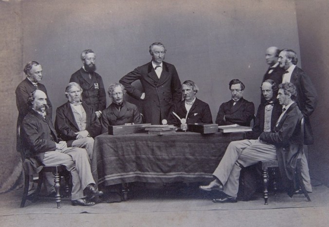 The administrator to Queen’s in the late 19th Century was such a Haileybury man. He had served his whole civil service career in India. He had been part of the building of Calcutta as the EIC’s administration centre; he had served as a local magistrate on the Gangetic Plains; he had seen hostile action in the Indian Uprising (then called the Mutiny); and, latterly, he had served as the Financial Secretary to the Viceroy, Lord Lawrence of India, where he prepared the budgets for the continent and the British Army on behalf of Her Majesty’s Treasury. He was himself the son of an enobled parliamentarian and famous lawyer. He stands on the left in the picture above in support of the Council of India and the Lords Lawrence and Napier.