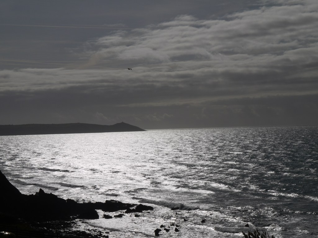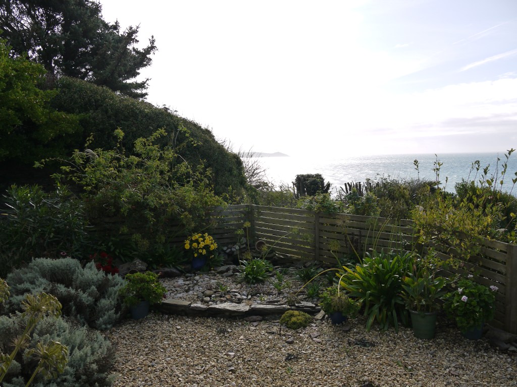 When a storm is rising out in the Atlantic, you can feel the wind start to pick up in the garden, and the sky darkens. Then the sea in our bay becomes an alternating mix of milky turquoise and silvery shimmers as the sun tries to break through the thickening clouds.