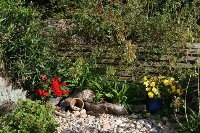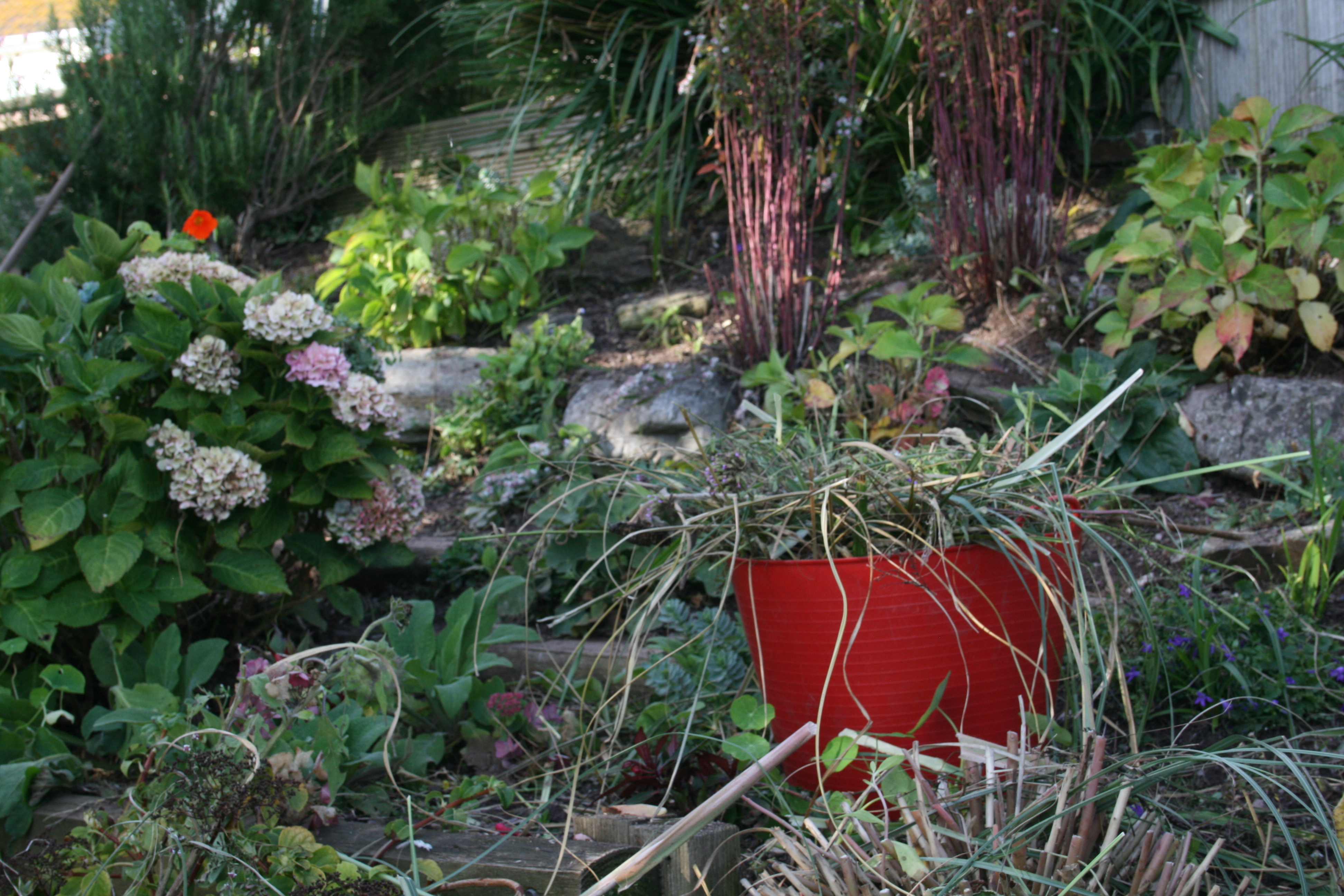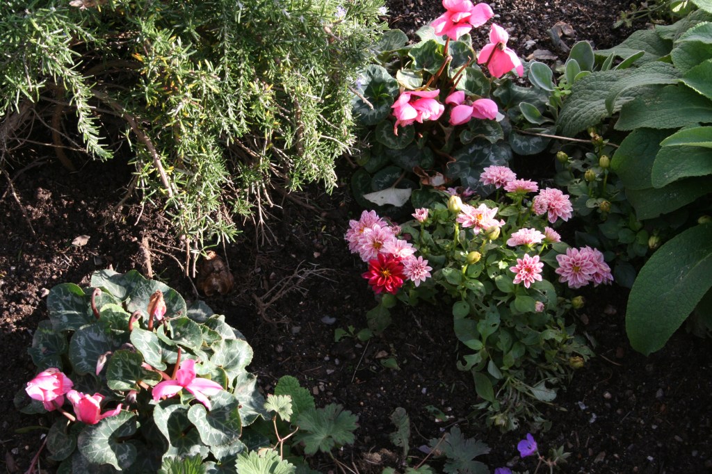 With the annual pruning, clarity returns as the terraces’ and western garden’s structure can be seen again. There’s the flourishing olive tree and campanula bank to the fore now they’re not acting as wallpaper to other more showy plants. But we still have a few pops of colour before winter arrives.