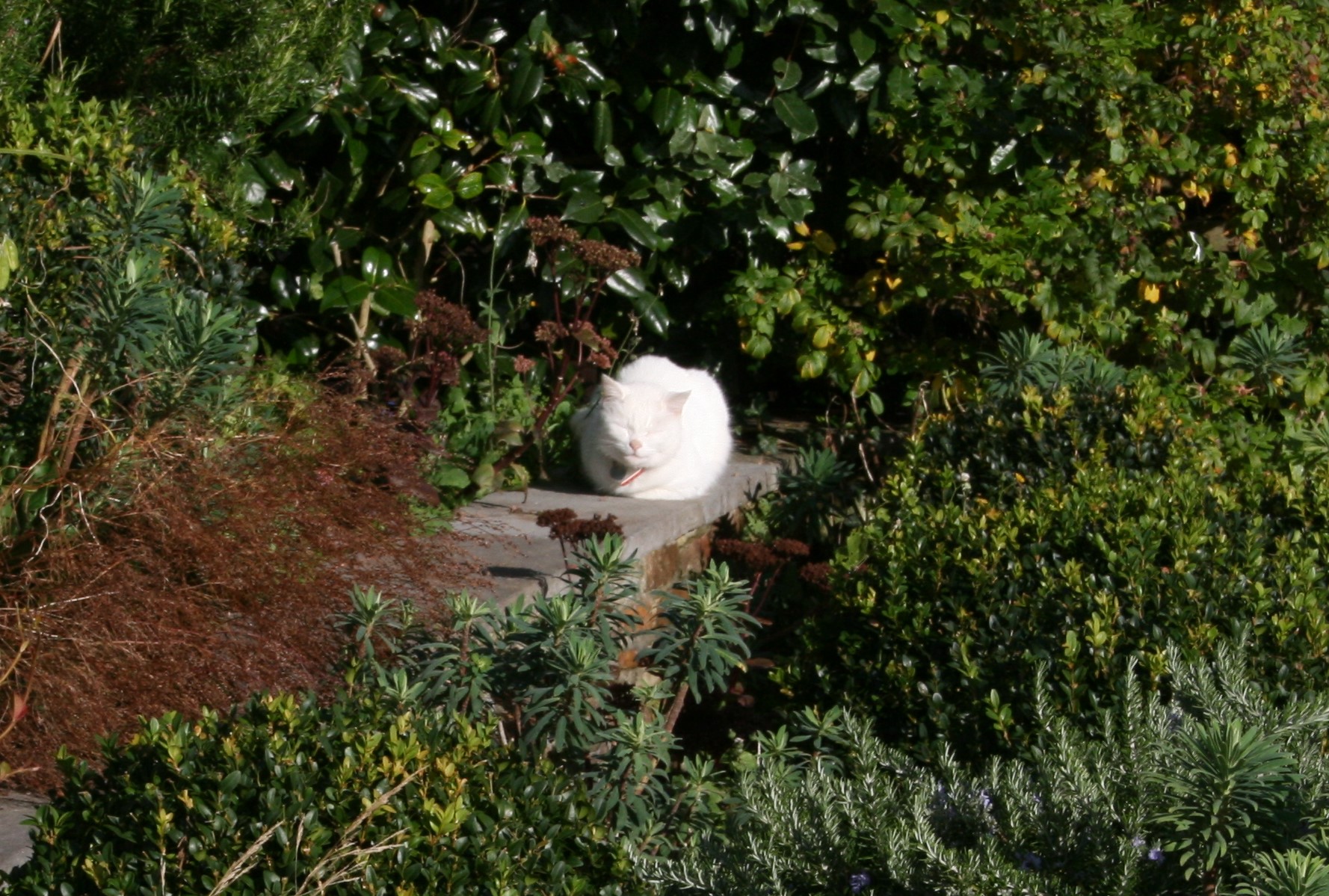 But the end of season cutback has begun. There is much work to do in between the rainy days. And a new resident has arrived – Snowy the Fat Cat. He loves snoozing in the sun. He reminds me of Cheshire Cat in Alice in Wonderland.