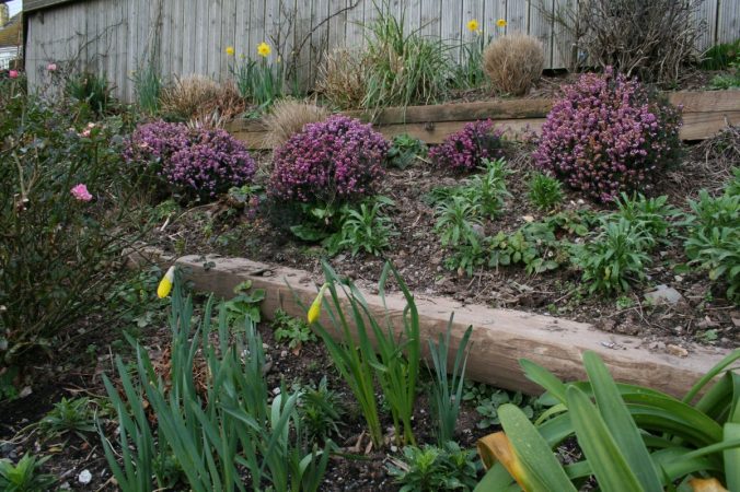 Camelias, heathers and hellebores are on show at the moment, and pale lemon primroses are starting to show their heads in Campanula Corner. And the daffodils have arrived in force just in time for St. David’s Day.
