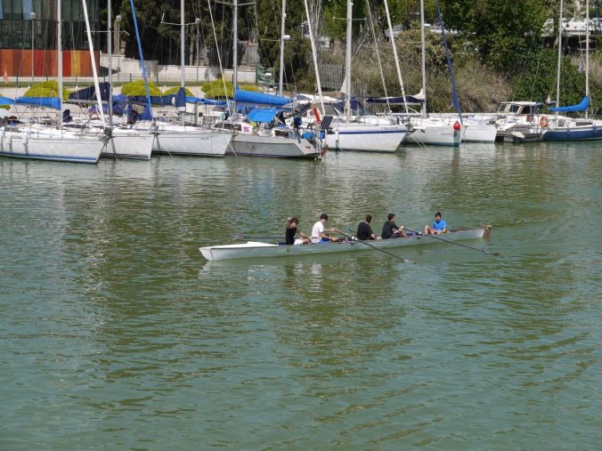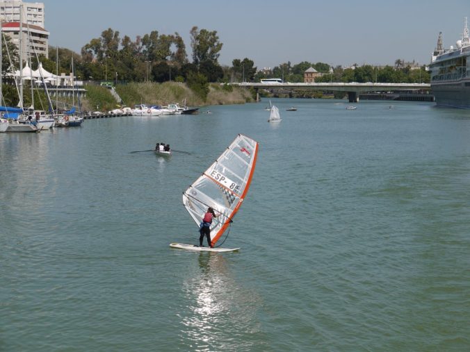 Andalucia is hot even at Easter, but in 2019 there was a heatwave so how the gardens survived in those conditions is a tribute to the Spanish gardeners. In Seville, there is much activity on the water in this busy urban part of the river from rowing and sailing to windsurfing.