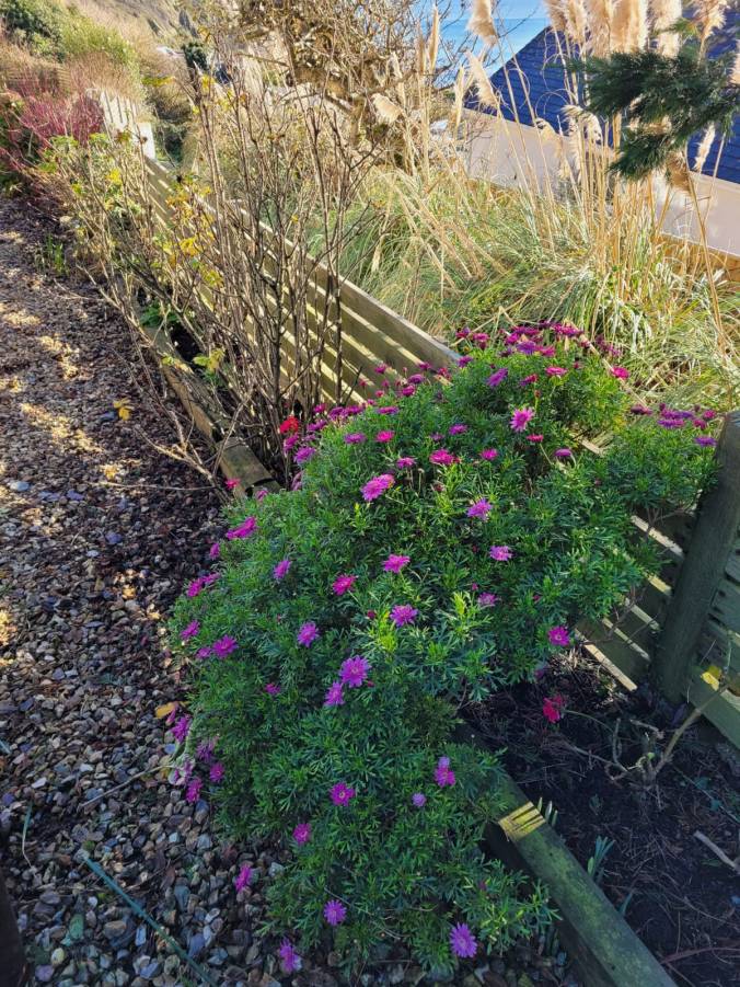 December has been very cold and wet as the storm season has arrived in force. We have had howling gales and heavy seas, and days on end of rain with the recent Storm Bella which came roaring across the Atlantic and hit us full on. There is much debris to clear but at least the water table will have been replenished. And we have now passed the winter solstice so the days will start to get longer and the sun a little higher. We did have one fine day and it showed how vibrant the plants can be even with all the salt-blasting and weather that mother nature can throw at them.