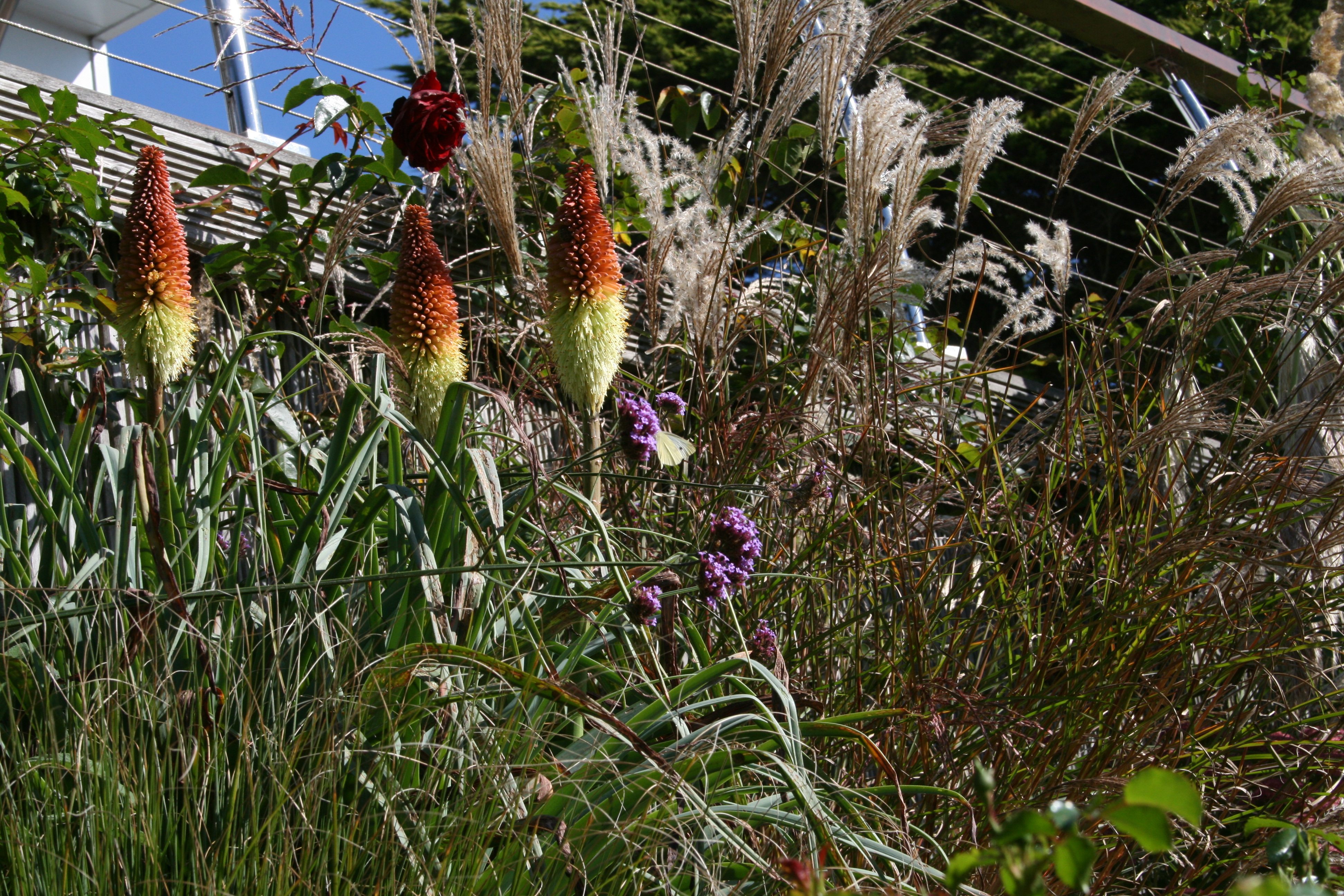 We have had unseasonably warm weather and drenching summer rain showers so the garden is still flourishing. The verbena and red hot pokers have done well supporting the wildlife and the last of the ruby red climbing rose is hanging on for a bit longer.