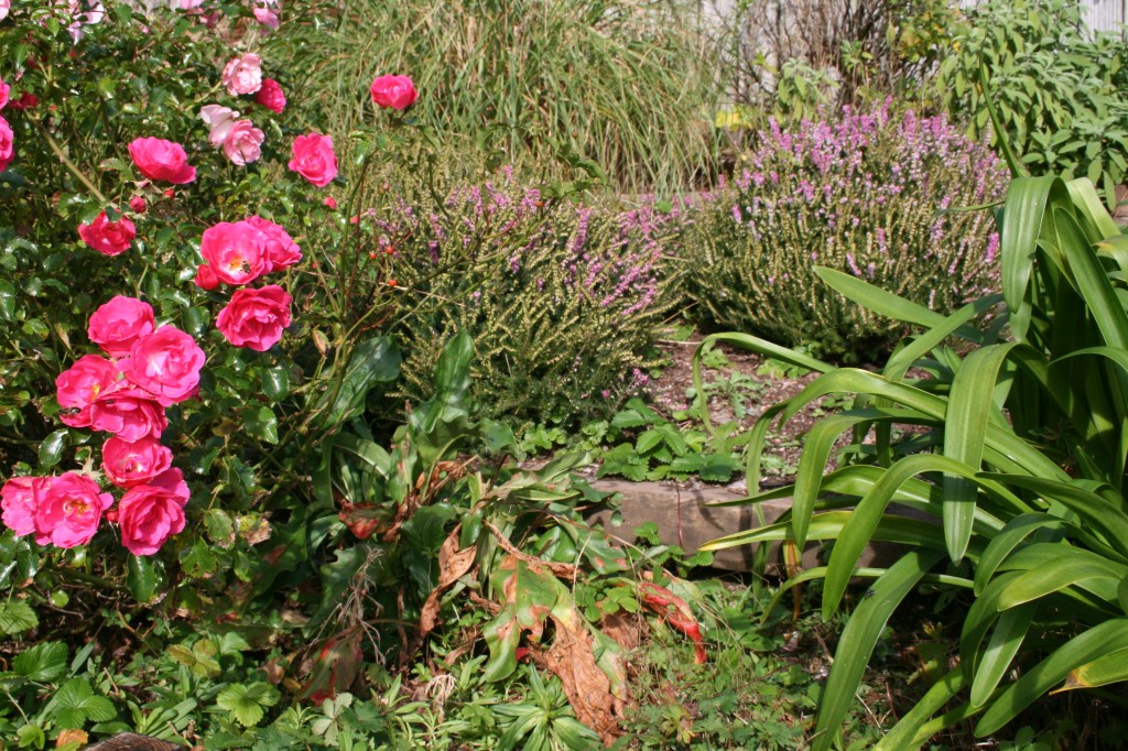 The big end of season clear out has started and while the look of autumn is emerging, there have been surprises. We found these heathers buried under the summer’s prolific growth and self-seeded sedums have popped out to give some rustic colour amongst the last of the season’s trailing roses. Meanwhile, the hydrangeas have faded and are going over.