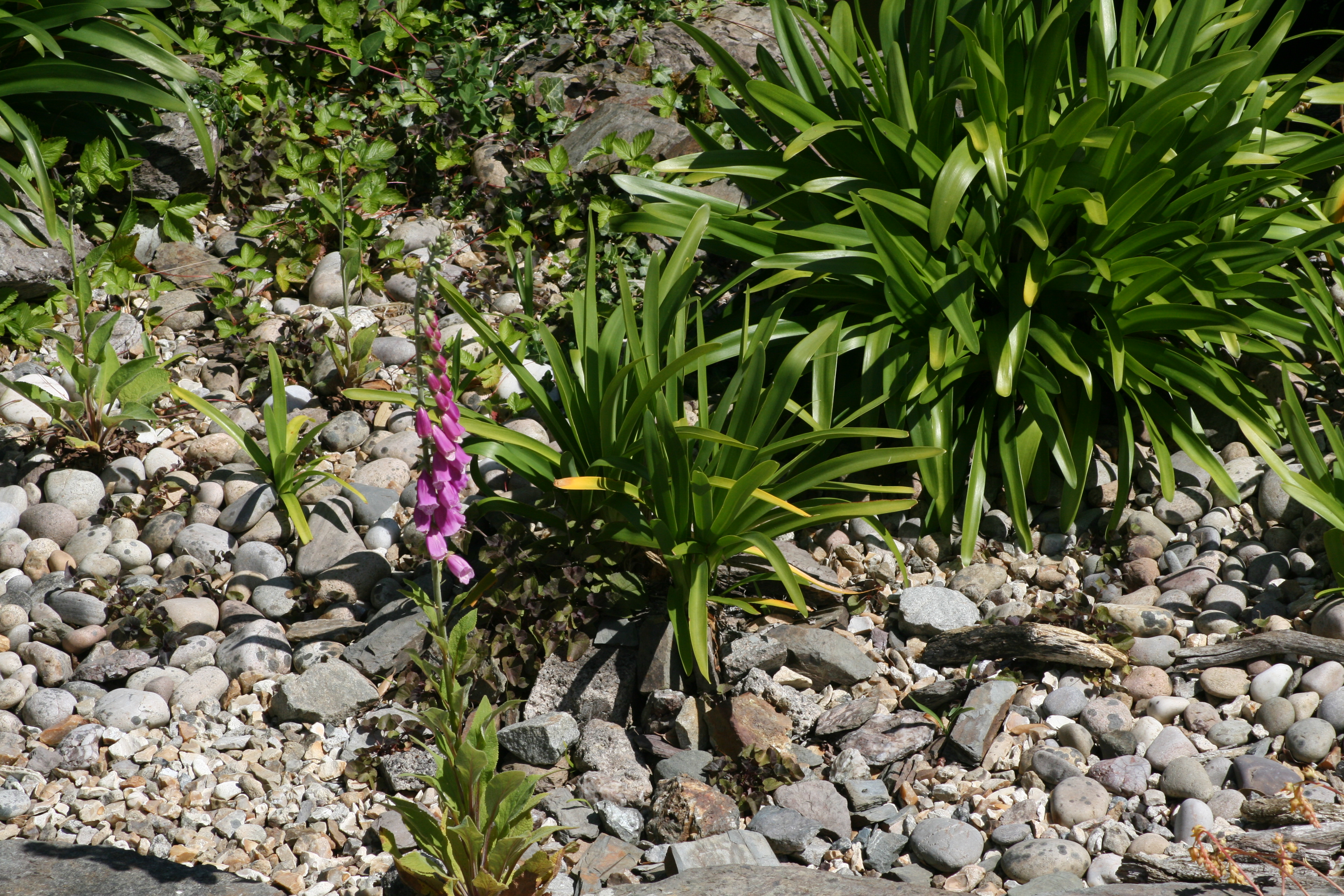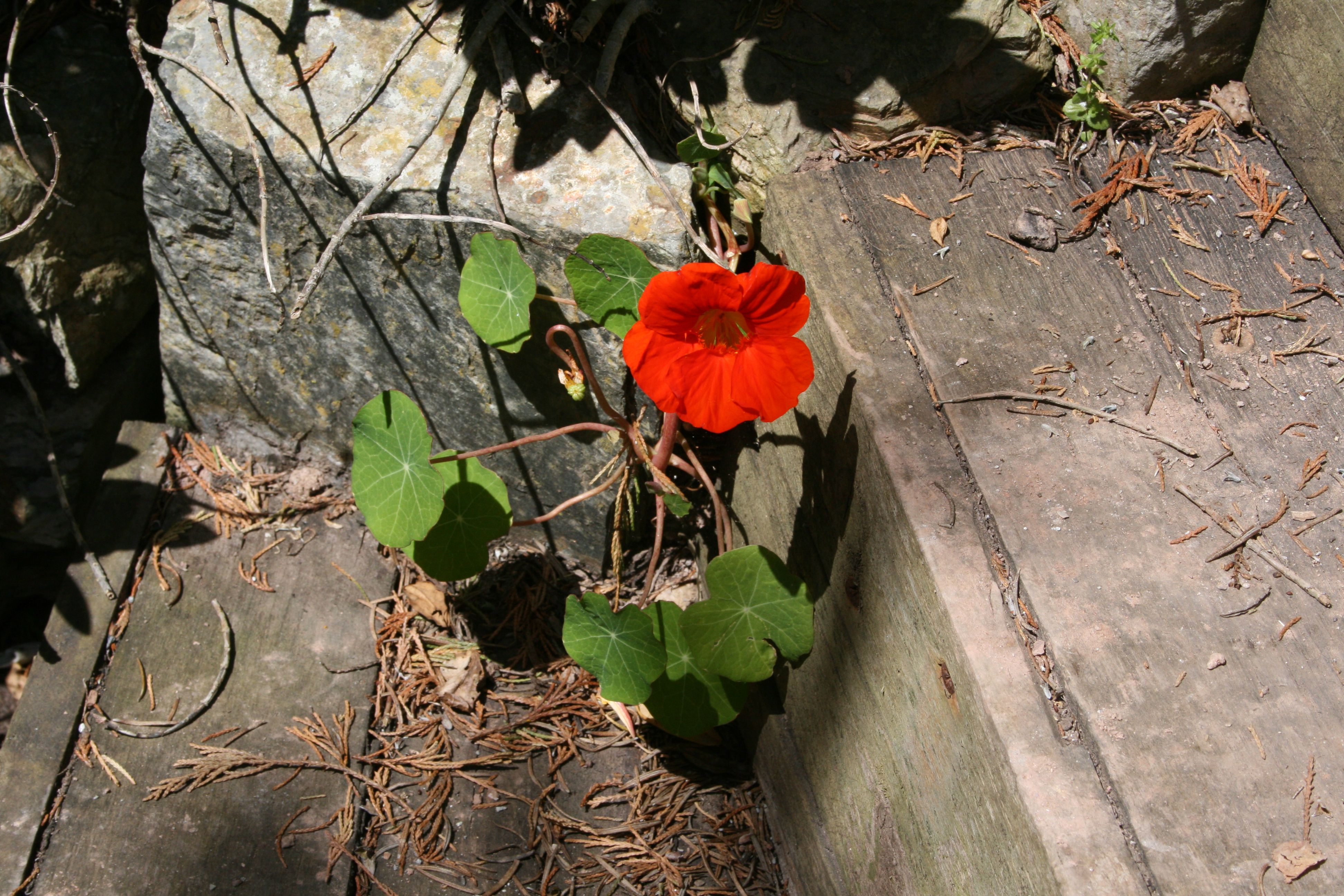 It is a muddle of growth everywhere you look and even in the most inhospitable situations, something still manages to get going like the nasturtiums and foxgloves- all self-seeded.