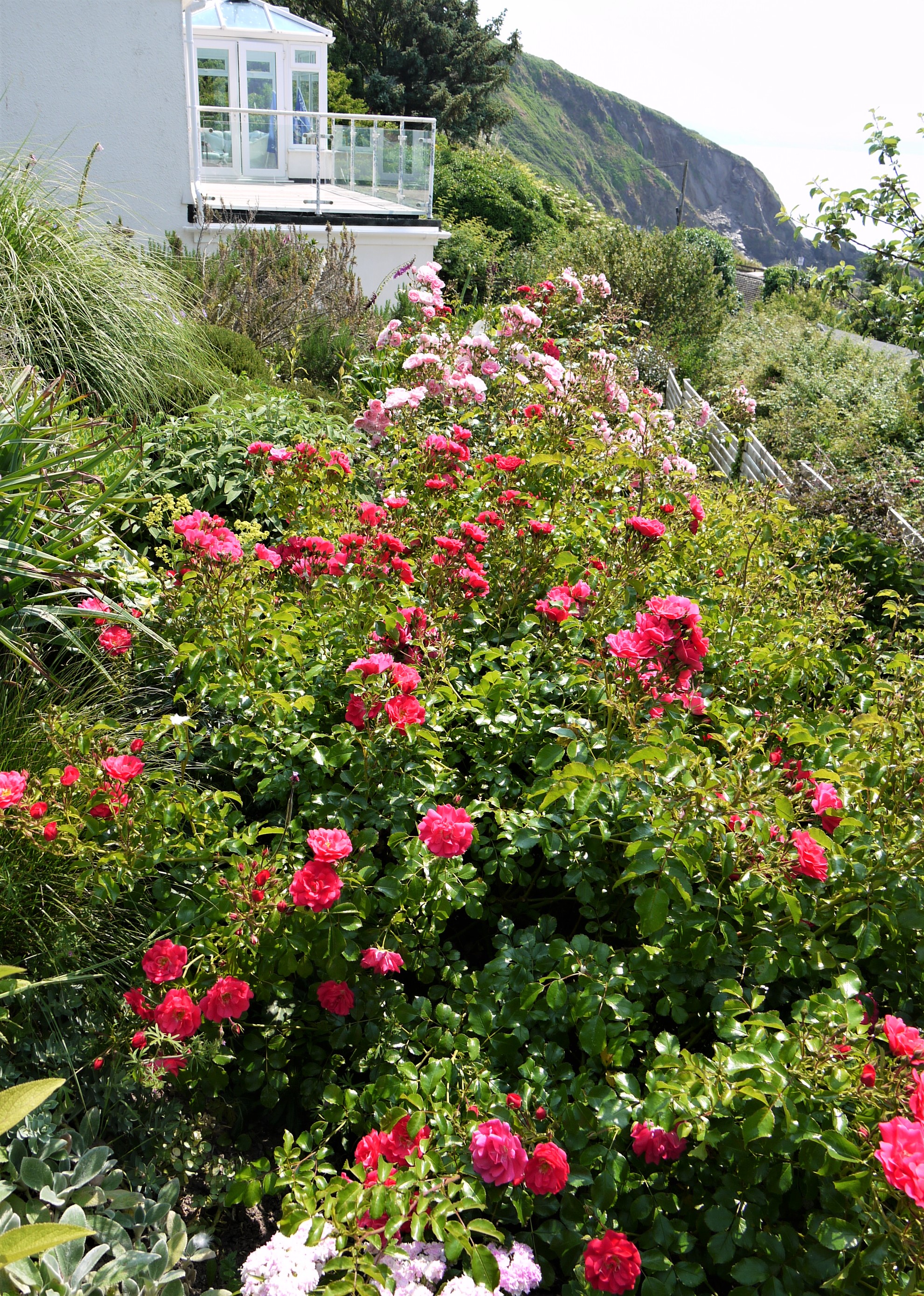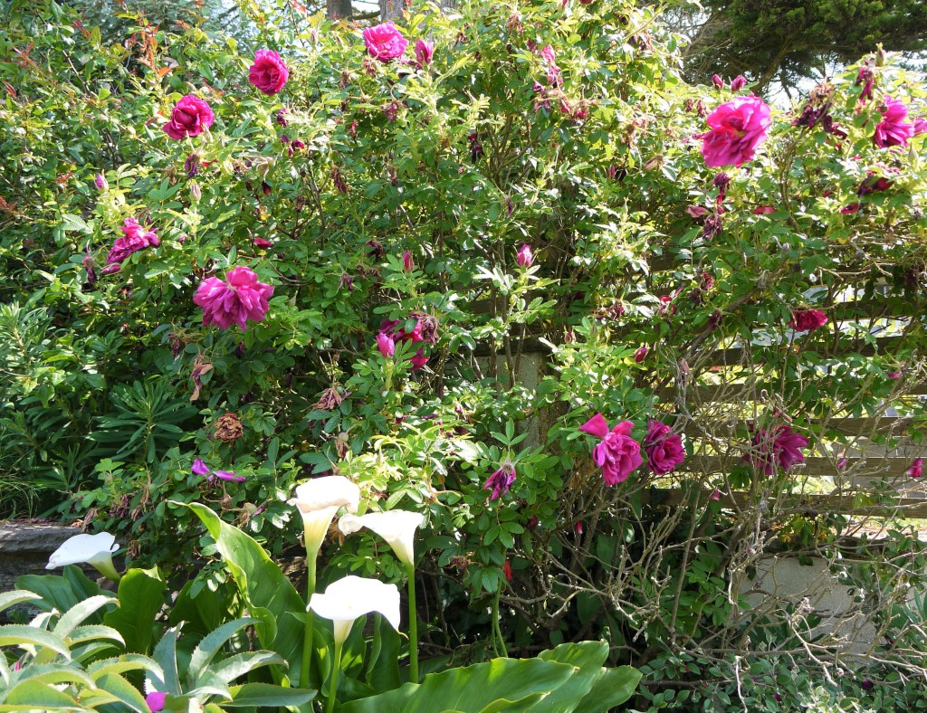 June means one thing: roses, roses and more roses. All that winter and spring rain went into making this luxurious rose garden. The distinctive fragrance of Rosa Ragusa fills the air in the summer evening’s warmth. And the best bit is they will keep going until late autumn when they will turn to bright red hips.