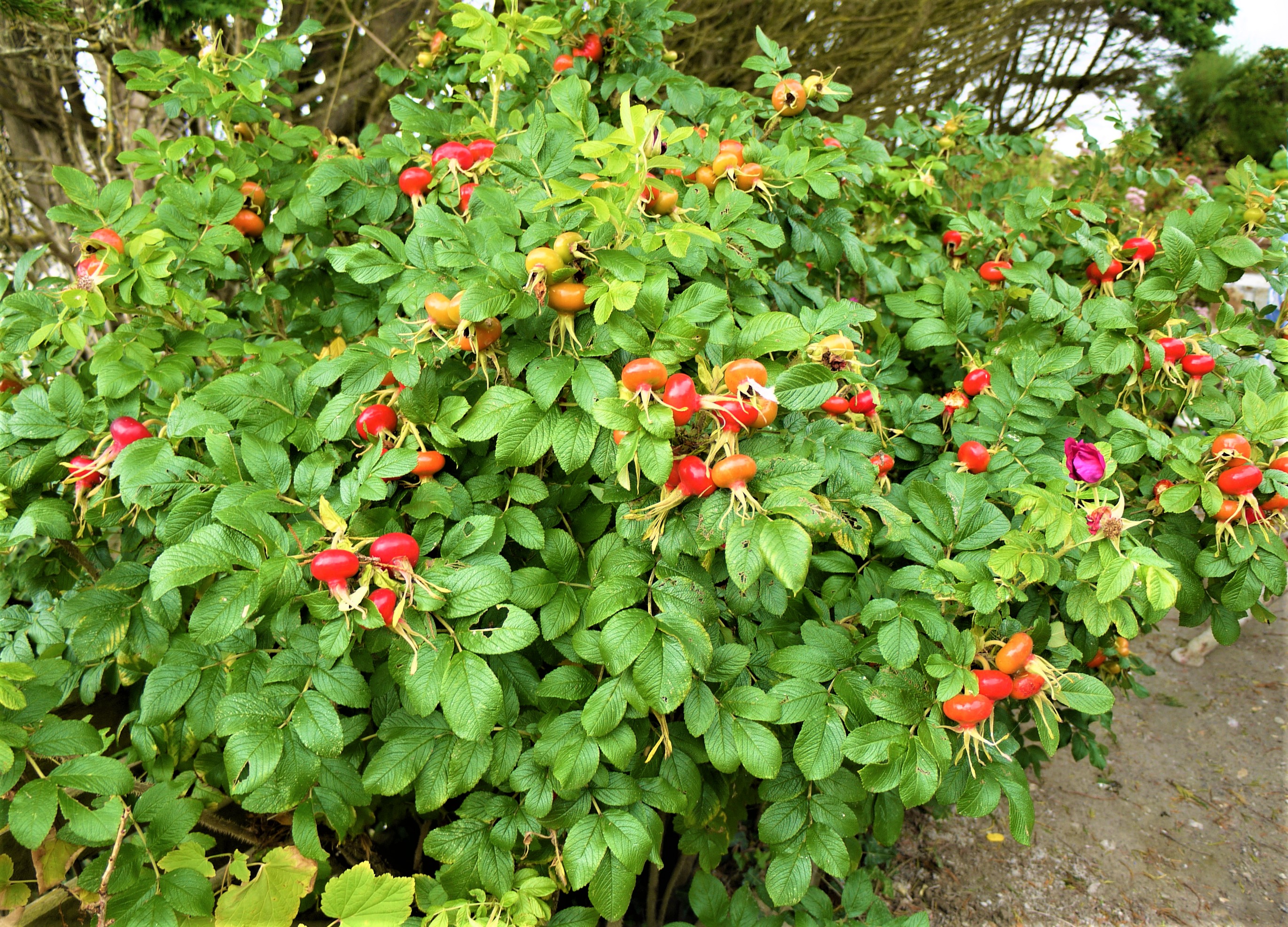 The summer is over before it began. We have had a few sunny days but it is very autumnal despite it being August. Storms Antoni and Betty have already been and we have not had the Harvest Festival yet. Time to take pleasure in small things like these glorious reds hips from the Rosa Ragusa. They are very abundant this year and they remind me of a favourite cough syrup when I was a child-Rose Hip Syrup.