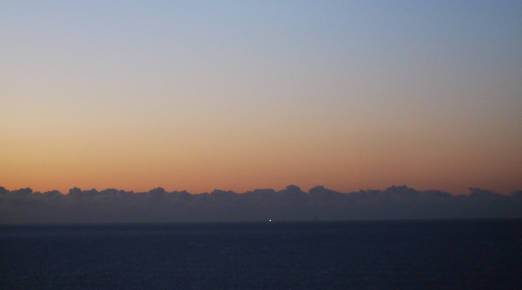 A break in the storms barrelling in off the ocean gives clear skies as the sun goes down resulting in freezing cold nights. Ships’ lights start to appear on the horizon as they wait to come into port in the next bay and as it gets darker, the night sky show begins. A zillion stars shine like a spray of diamonds in the inky black sky. It is worth braving the intense cold to go out and watch the display.