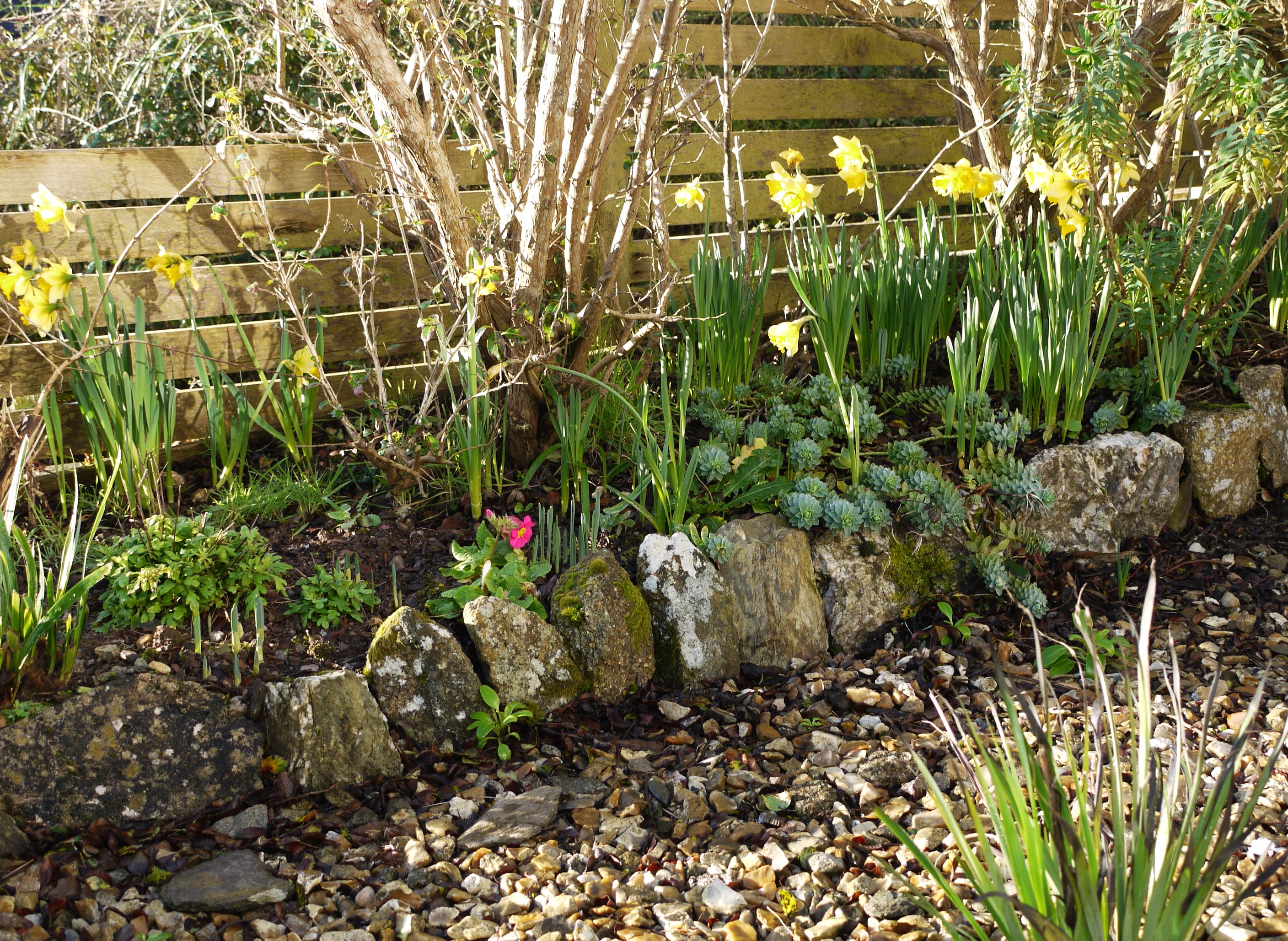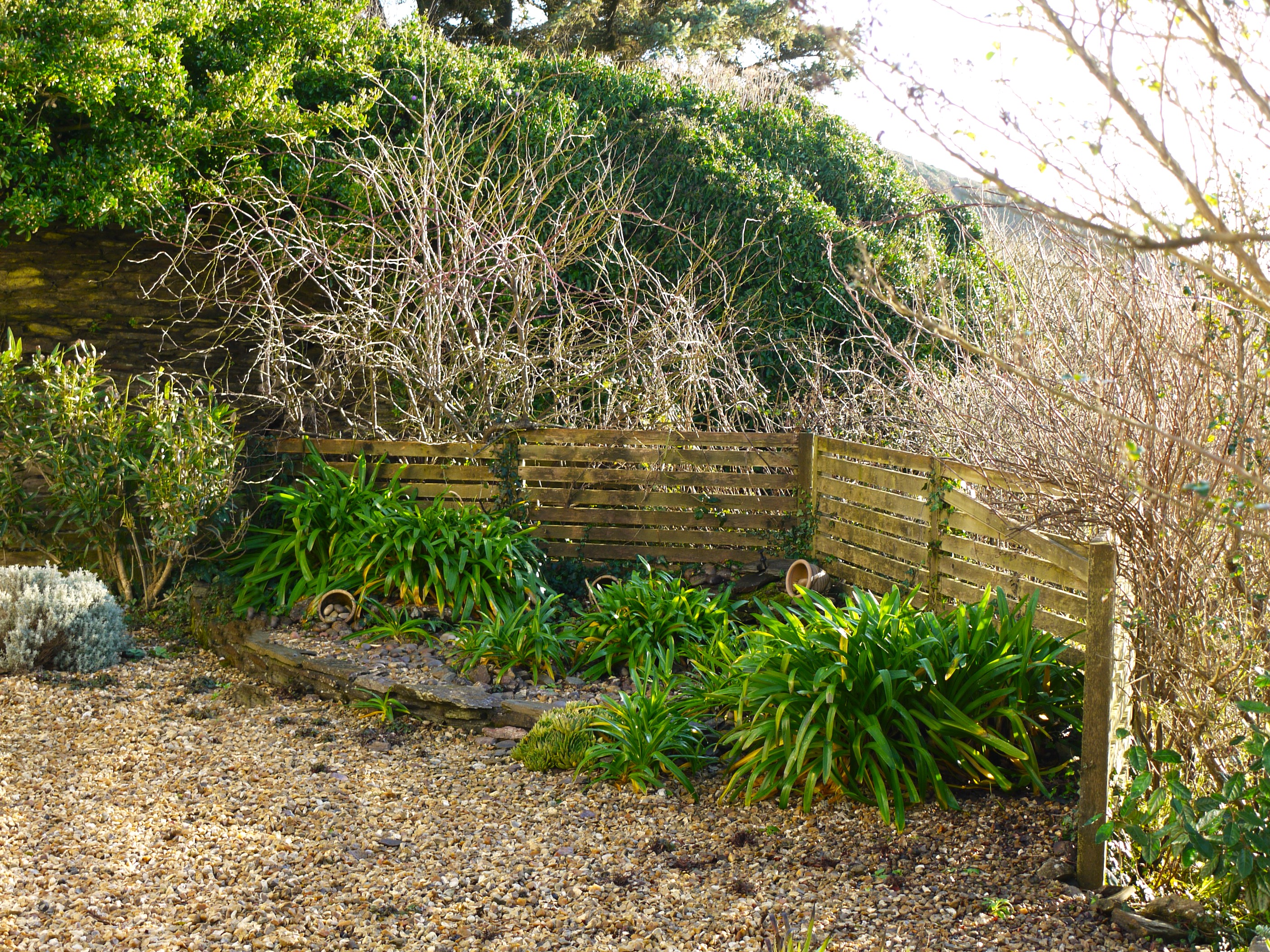 Despite the wintery temperatures, there are the first signs of spring: daffodils with a pop of pink from a sole primrose. The heathers have survived and are trying while the agapanthuses down in the secret garden look very healthy despite the constant salt blasting and the frost.