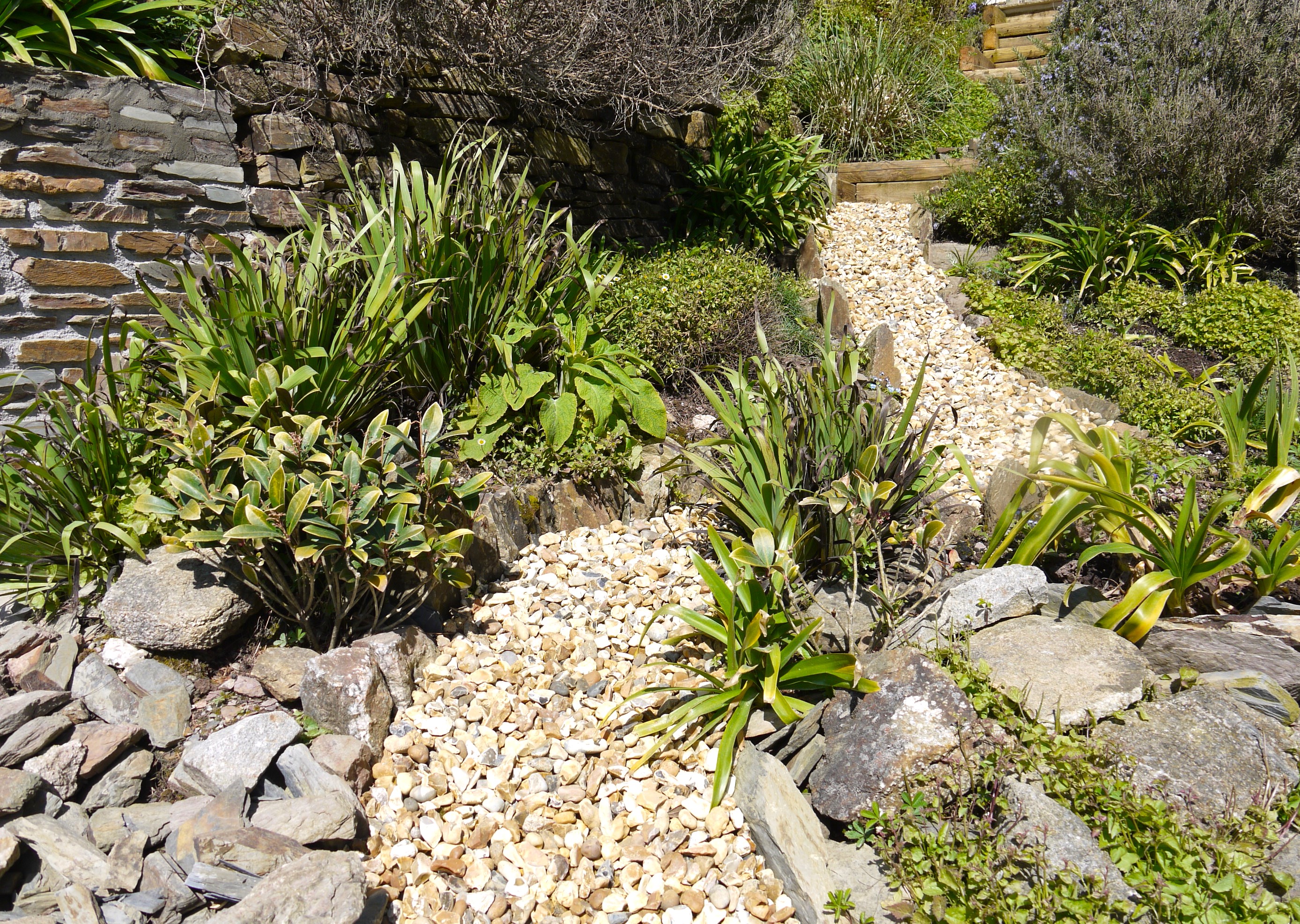 Sadly all the lavenders have died on lavender hill as the weather has been too harsh. Before the erigerons take over, we are going to try planting more agapanthuses. They are tough enough to stand the salt blasting on this exposed site.