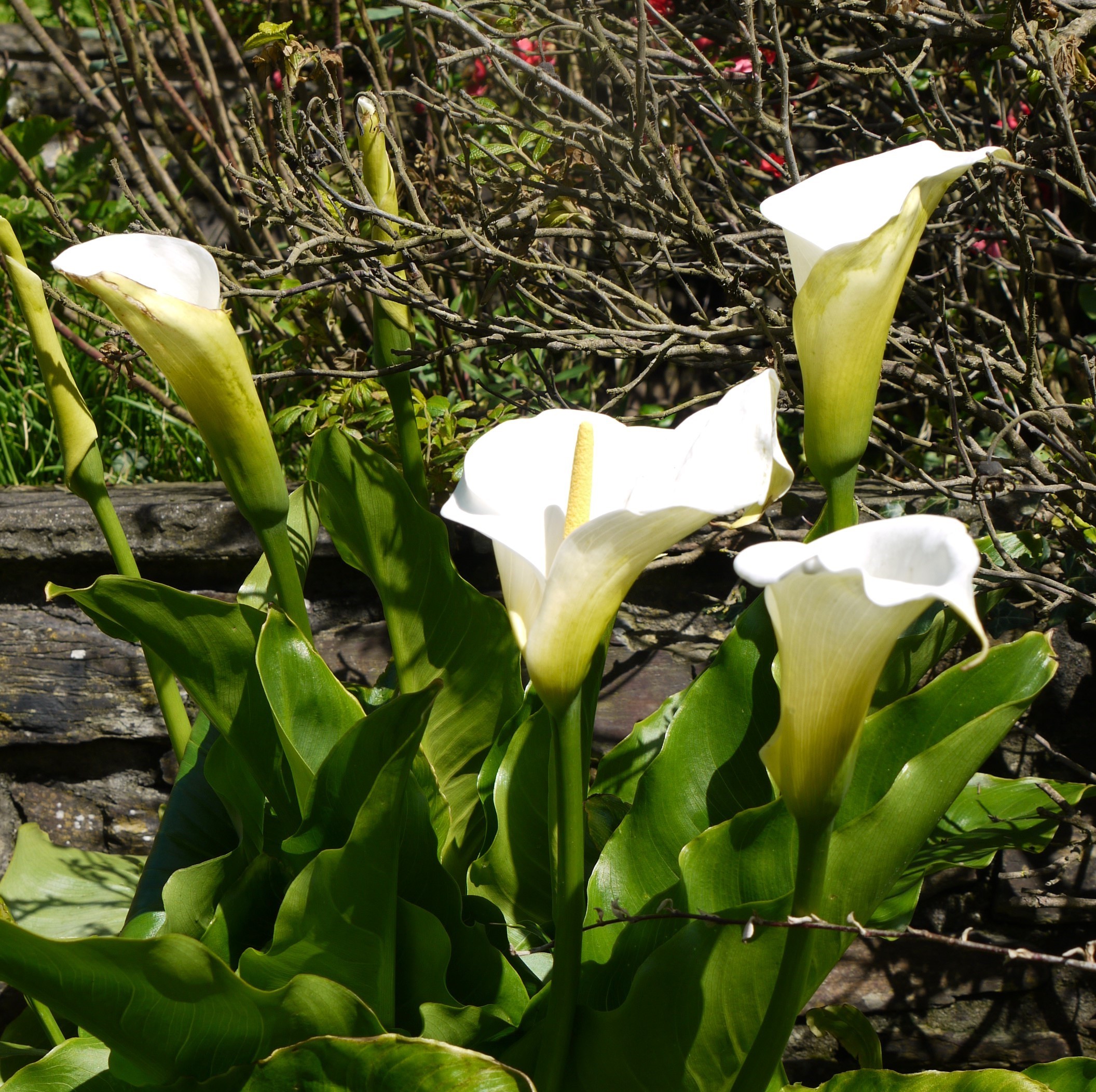 And spring has sprung. Up early are the arum lilies. Who would have thought that these statuesque flowers would emerge from the piles of mush that they were in the terraces only a few weeks ago.